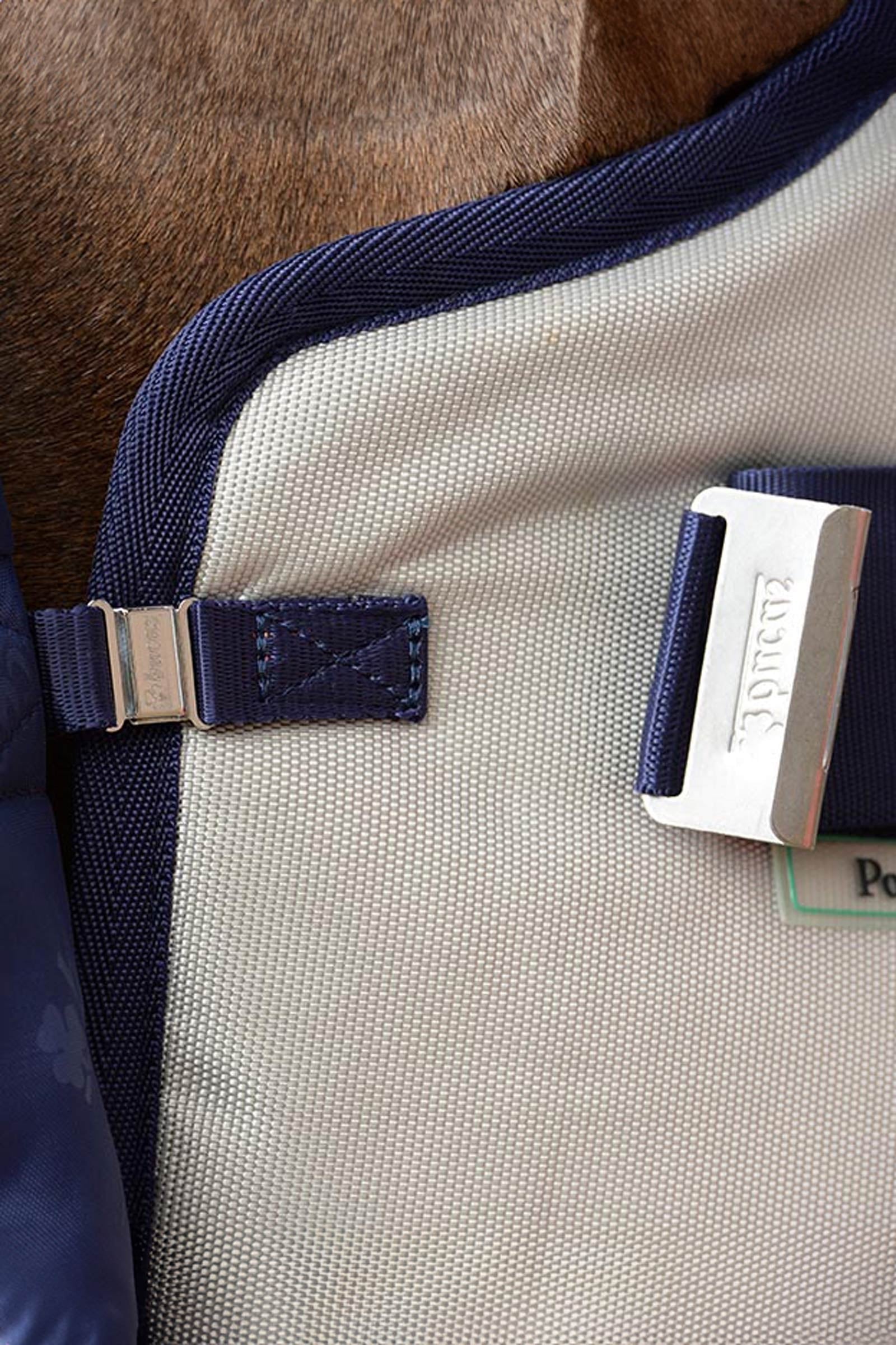 Offering extraordinary strength, durability and quality, perfect comfort and protection at a wide range of temperatures. The Power Turnout has a heat reflective aluminium inner coating and a sun reflective silver outer which extends the temperature range in which the Power Turnout can be used. It also comes with Stay-dry, Anti-Bacterial lining which means the rug can be put on a wet horse in the same way as a sweat rug. It will quickly dry the horse and can be left on, thus avoiding any extra rug changes. The Power Turnout Big Neck is ideal for Stallions and breeds of horses that tend to be wider across the shoulders like Friesians, Andalusian and Draughts.